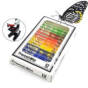 Bộ 12 tiểu bản mẫu vật của động thực vật dùng trên kính hiển vi Các mẫu được kín với một coverslip để bảo quản mẫu vật và ngăn ngừa ô nhiễm. Tuyệt vời