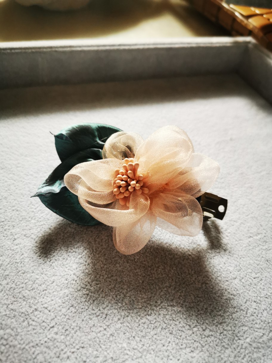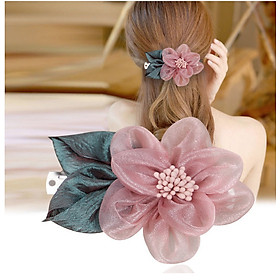 Trang trí hoa xinh xắn, thiết kế dạng bấm tạo sự độc đáo riêng cho mái tóc, nét duyên dáng gọn gàng, tô điểm cho mái tóc của bạn gái.