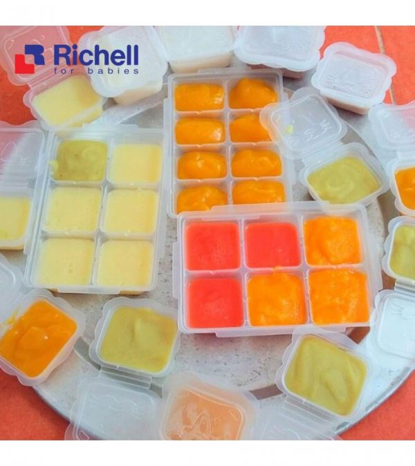 - Mỗi khay trữ đông Richell chia làm 6 ngăn nhỏ sâu lòng, đi kèm nắp đậy kín đảm bảo vệ sinh tối đa. Sản phẩm rất thích hợp để mẹ cất trữ khẩu phần riêng biệt cho con theo từng bữa (đặc biệt với các mẹ theo phương pháp ăn dặm kiểu Nhật).