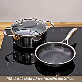 Bộ gồm 1 nồi nông 20cm và 1 chảo chiên 20cm. Bộ nồi chảo cỡ nhỏ xinh phù hợp với các căn bếp nhỏ, các món ăn ít thực phẩm. Toàn bộ thân nồi chảo đều 3 lớp với họa tiết độc đáo Blakcube cùng lớp chống dính Silkware kết hợp giúp nồi chảo phân tán và tối ưu nhiệt tốt nhất,không dính không trầy xước, nấu ăn ngon và tốt cho sức khỏe.