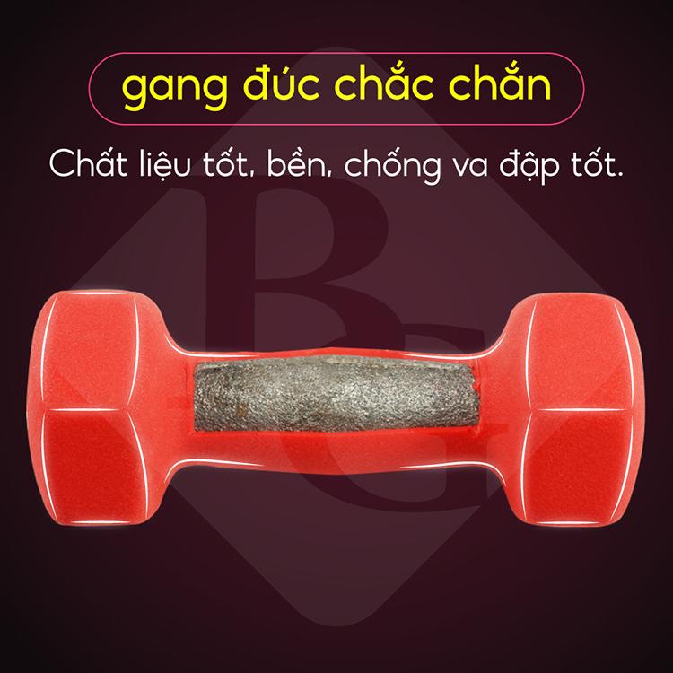 Phần ngoài tạ có phủ một lớp cao su cao cấp, mềm mại cho cảm giác cầm rất thoải mái, êm tay và tránh hiện tượng lõi bị gỉ cũng như một số chấn thương nhỏ khác.