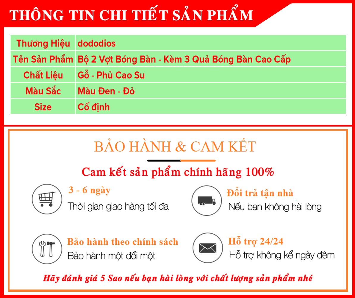Mô Tả - Bộ 2 Vợt Bóng Bàn Kèm 3 quả Bóng bàn Chính hãng dododios: