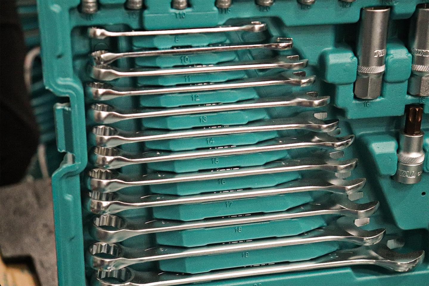 Thương hiệu đồ nghề và máy móc Total ngày càng khẳng định vị thế của mình trên thị trường, cạnh tranh thị phần với những nhãn hiệu có danh tiếng xưa giờ luôn. Total sẽ chứng minh hàng rẻ nhưng có chất lượng tốt là có thật! Total tools - Không cần bỏ số tiền lớn nhưng vẫn có cho mình những đồ nghề chất lượng. Từ những món đồ nghề đơn giản như búa, tuốc nơ vít, lục giác, cờ lê mỏ lết… được sử dụng nhiều trong gia đình cho đến những máy móc dùng điện và pin Lithium-Ion như máy khoan, máy đục bê tông, máy cưa lọng, máy cắt sắt, máy mài góc Thông số kĩ thuật -Mã sản phẩm: THKTHP22166 -Nhà sản xuất: Total -Gồm:: 3 chìa vặn size: 1/4" & 3/8" & 1/2” 13 đầu giác 1/4":4-4.5-5-5.5-6-7-8-9-10-11-12-13-14mm 10 đầu lục giác 3/8": 10-11-12-13-14-15-16-17-18-19mm 14 Đầu lục giác 1/2":10-11-12-13-14-15-17-19-21-22-24-27-30-32mm. 5 đầu tuýp hình sao: 1/4":E4-E5-E6-E7-E8 6 đầu tuýp hình sao 3/8":E10-E11-E12-E14-E16-E18 3 đầu tuýp hình sao 1/2":E20-E22-E247 đầu lục giác sâu 1/4": 4-5-6-7-8-9-10mm 6 Đầu lục giác sâu 3/8": 10-11-12-13-14-15mm.5 ổ lục giác sâu 1/2": 16-17-18-19-22mm. 1 đầu tuýp bugi 1/2'': 21mm 2 đầu tuýp bugi 38/'': 16mm & 18mm. 1 thanh trượt T 1/4 inch 2 thanh mở rộng 1/4":50mm(2") & 100mm (4")1 bộ chuyển đổi ba chiều 1/4'' : 3/8"(F)1/4"(M) 1 thanh mở rộng 3/8": 150mm(6")1 bộ chuyển đổi ba chiều 3/8'': 1/4"(F)x3/8(M) 2 thanh mở rộng 1/2":125mm(5")&250mm(10")1 bộ chuyển đổi ba chiều 1/2'': 3/8"(F)x1/2(M) 3 Khớp nối vạn năng Dr.: 1/4"&3/8"&1/2" 1 tay quay 1/4"150mm, 1 trục nam châm : 6,35mm 100mm 3 khung đỡ: 1/4"6.35mm & 3/8"8mm & 1/2"8mm 40 mũi vít 6.35*25mm(L): T5-T6-T7-T8-T9-T10-T15-T20-T25-T30-PH1-PH2-PH2-PH3-PH4-PZ3-PZ4-SL2.5-SL3-SL4 -SL5-SL5.5-SL6-SL6.5-SL7-SL7-H2-H3-H3-H4-H4-H5-H5-H6-H7-H7 32 mũi vít 8x30mm(L) PH3-PH4-PZ3-PZ4-H7-H8-H10-H12-H14-SL5-SL6-SL6.5-SL8-T27-T30-T35-T40-T45-T50-T55-T27H -T30H-T35H-T40H-T50H-M5-M6-M8-M10 30 đầu cắm bit 1/4"x32mm(L):PH1-PH2-PH3-PZ1-PZ2-PZ3-H3-H4-H5-H6-SL4-SL5.5-SL6.5-SL8-T8-T9-T10- T15-T20-T25-T27-T30-T8H-T9H-T10H-T15H-T20H-T25H-T27H-T30H 2 Cái ổ cắm bit 1/2"x58mm(L): T55-T60 Cờ lê kết hợp 12 chiếc: 8-9-10-12-13-14-15-16-17-18-19-22mmBộ cờ lê lục giác 8 cái: 1.5-2-2.5-3-4-5-5.5-6mm