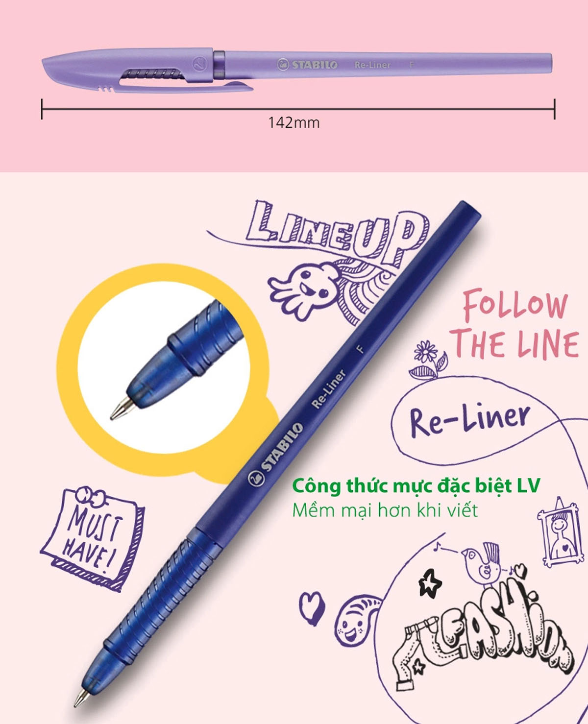 - Đầu bi: 0.8 mm dạng Cone , sản xuất tại Thụy Sĩ. - Grip cùng màu mực - Độ dài viết được: 1.200-1.500m. - Thân bút thanh mảnh cơ chế bấm khế tiện dụng