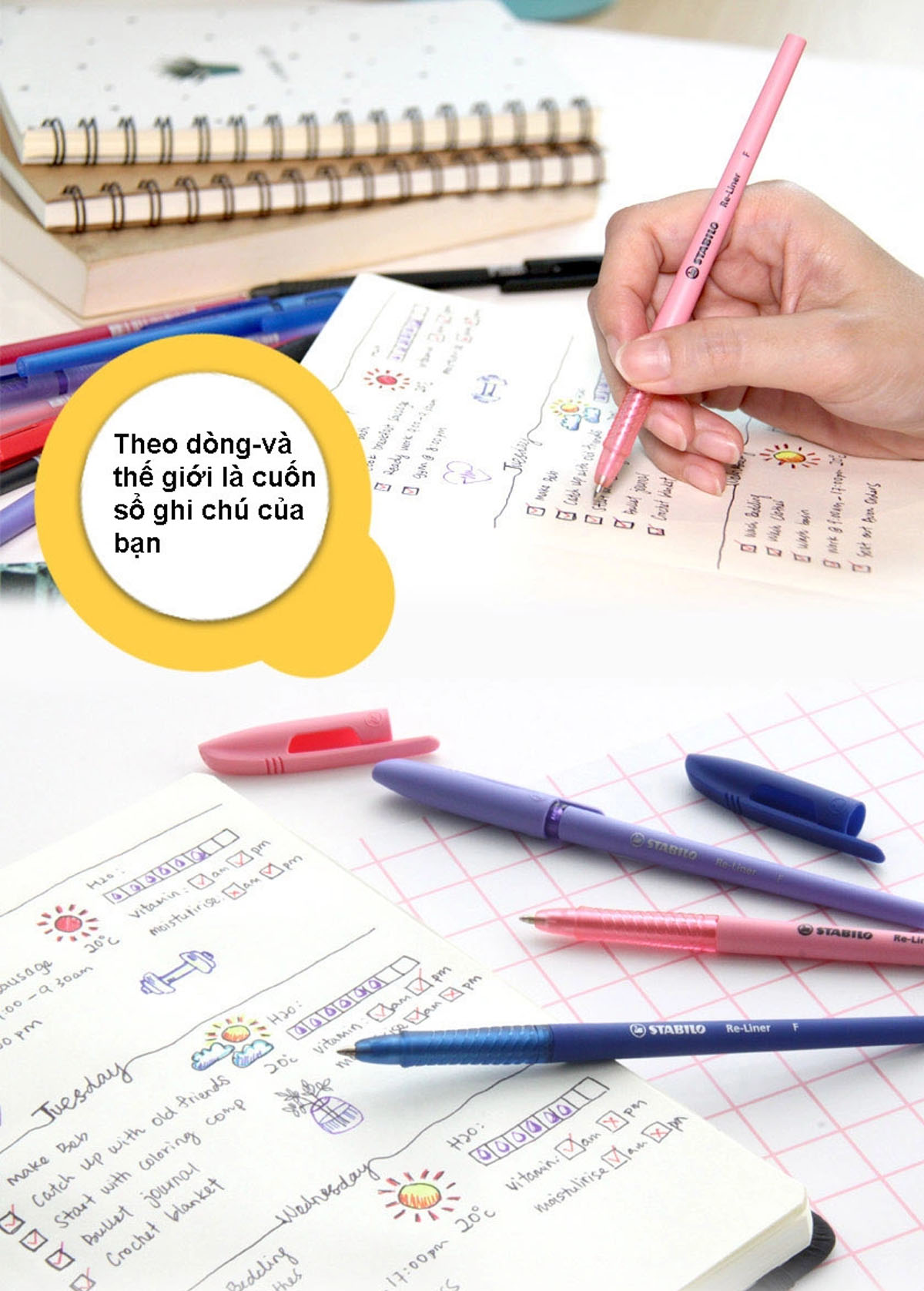 COMBO 10 MÓN 1x Bút bi Liner nét 0.7mm màu đen 1x Bút bi Liner nét 0.7mm màu xanh 1x Bút bi Liner nét 0.7mm màu đỏ 1x Bút bi Bille nét 0.7mm màu xanh