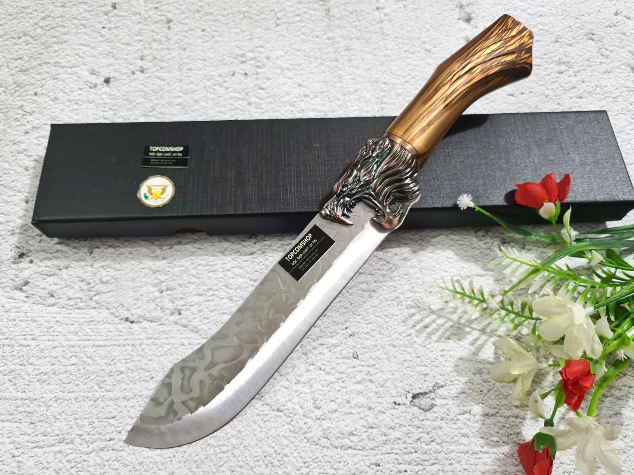 D SỐ 4 : TỔNG DÀI : 32cm, LƯỠI: 18cm,RỘNG : 4.5cm, dày: 3mm, NẶNG : 2.3 lạng, CHẤT liệu lưỡi: 4Cr13MOV (thép 4 crom 13 molypden vanadi).Chất liệu CÁN: nhựa abs xịn . khâu đầu rồng và chuôi bằng thép 4cr13