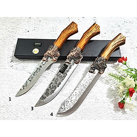 D SỐ 3 : TỔNG DÀI : 32cm, LƯỠI: 17cm,RỘNG : 4.5cm, dày: 4mm, NẶNG : 2 lạng, CHẤT liệu lưỡi: 4Cr13MOV (thép 4 crom 13 molypden vanadi).Chất liệu CÁN: nhựa abs xịn . khâu đầu rồng và chuôi bằng thép 4cr13