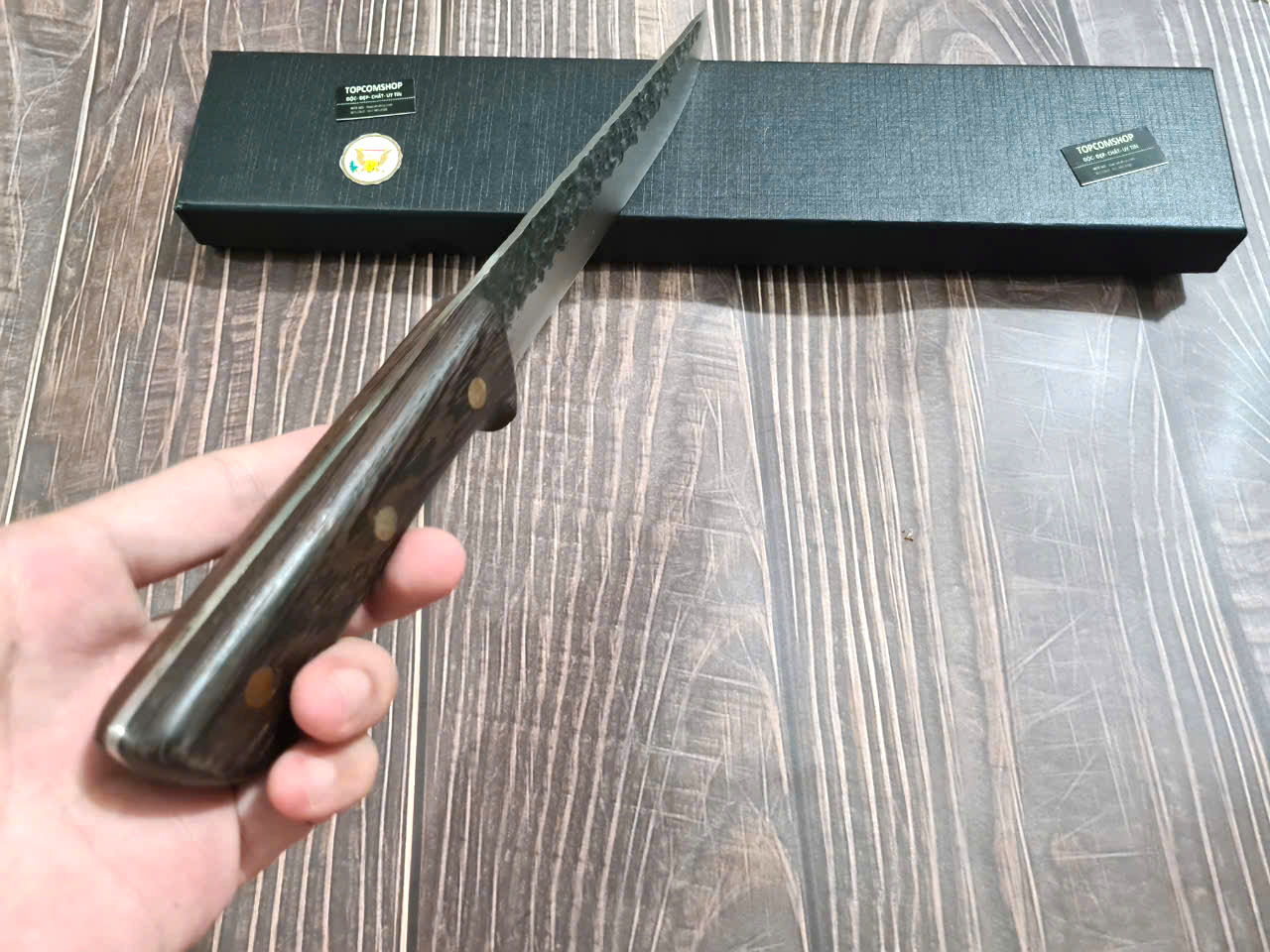 • Chất liệu: Thép Nhật 420J2, độ cứng 53HRC – siêu bền, chống gỉ • Lưỡi dao: Dày 2.5mm, sắc bén, hoàn thiện bằng đá mài nước • Tay cầm: Gỗ Pakka sang trọng, chống