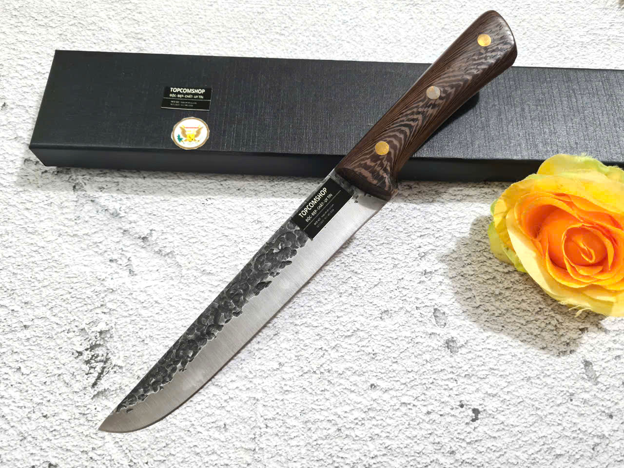 • Chất liệu: Thép Nhật 420J2, độ cứng 53HRC – siêu bền, chống gỉ • Lưỡi dao: Dày 2.5mm, sắc bén, hoàn thiện bằng đá mài nước • Tay cầm: Gỗ Pakka sang trọng, chống
