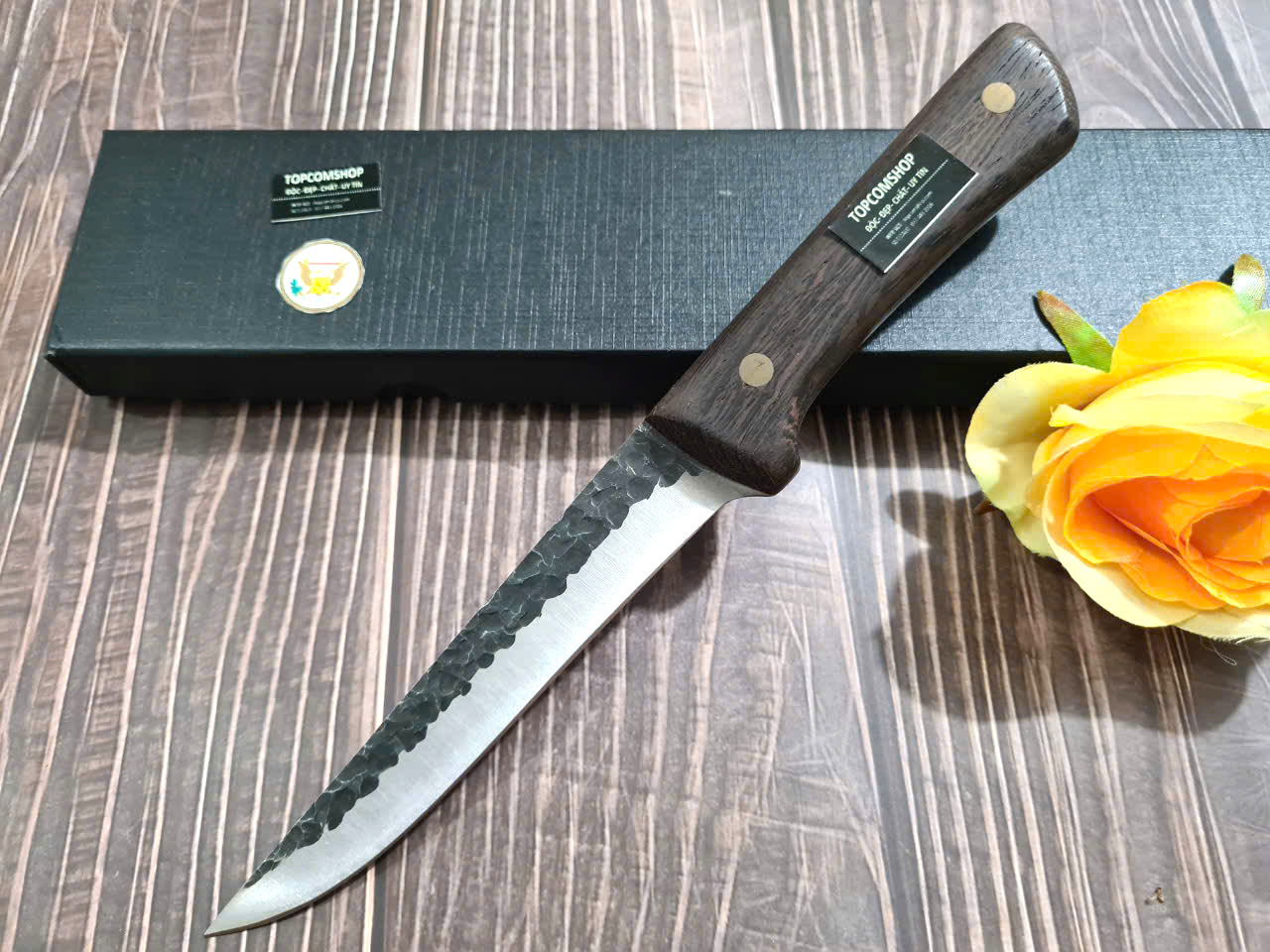 D SỐ 1 : TỔNG DÀI : 27cm, LƯỠI: 14cm,RỘNG : 2.3cm, dày: 2.5mm, CHẤT liệu lưỡi: 5Cr15MOV (thép 5 crom 15 molypden vanadi).Chất liệu CÁN: gỗ Cánh gà,.NẶNG : 1.5 lạng