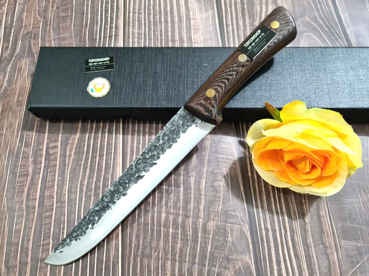 • Chất liệu: Thép Nhật 420J2, độ cứng 53HRC – siêu bền, chống gỉ • Lưỡi dao: Dày 2.5mm, sắc bén, hoàn thiện bằng đá mài nước • Tay cầm: Gỗ Pakka sang trọng, chống