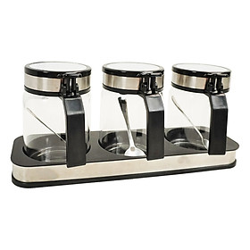 Bộ 3 hũ thủy tinh đựng gia vị 300ml Kalpen SB2 kèm khay và muỗng Inox
