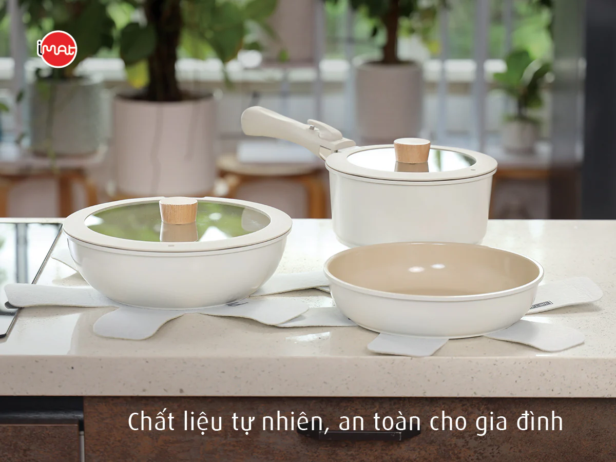 Sản phẩm được làm từ chất liệu tự nhiên như nhôm, gốm, thủy tinh, silicone và gỗ, mang lại sự an toàn khi nấu ăn.