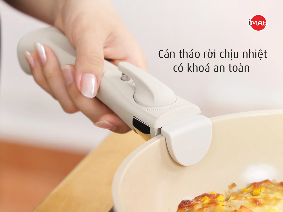 ️ Cán nồi/chảo: Làm từ nhựa Bakelite chịu nhiệt cao, có thể tháo rời, tiện lợi cho việc cất giữ tiết kiệm không gian.