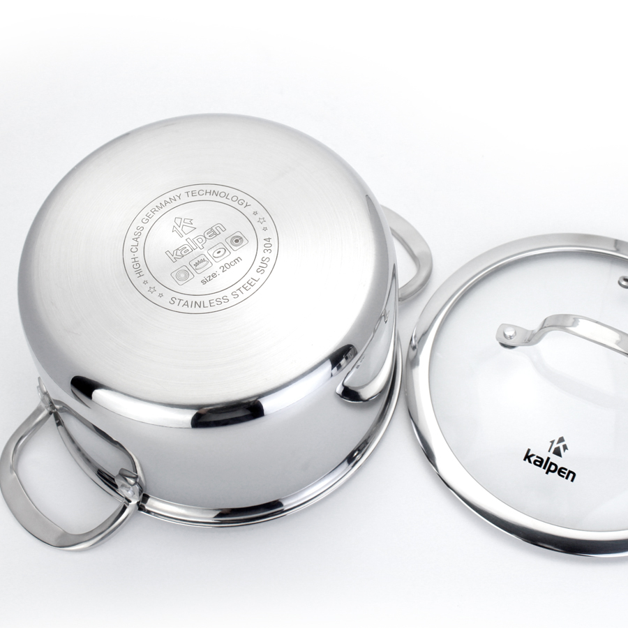 Nồi Inox 304 đúc liền 3 lớp Kalpen Kazler 18cm/20cm/24cm đáy từ vung kính chuẩn Đức, bảo hành 5 năm