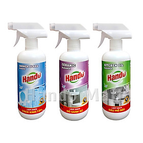 Mua tại TiktokBộ sản phẩm bao gồm 3 chai : 1.Làm sạch dầu mỡ: là sản phẩm làm sạch dầu mỡ nhà bếp cũng như dầu mỡ công nghiệp cực hiệu quả được sản xuất theo công nghệ phân hủy dầu mỡ của Nga làm biến đổi dầumỡ làm chúng không còn khả năng bám dính. 2.Làm sạch đồ sành sứ : Tẩy sạch bồn rửa mặt, bồn toilet, bồn tắm… bị cáu cặn ố vàng một cách dễ dàng 3.Làm sạch vách kính nhà tắm : Làm sạch hoàn toàn mọi vết ố vàng, vết bẩn cứng đầu bám lâu ngày trên kính. Thể tích: 570ml/chai Lưu ý: đeo găng tay khi sử dụng. Tránh xa tầm tay trẻ em.