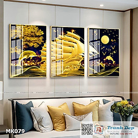 ✨Bộ 3 tranh mica cao cấp Ca heo, thuyền và biển - MK079
