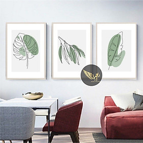 ✨Bộ 3 tranh treo tường LÁ CÂY, ĐƠN GIẢN trang trí phòng khách,phòng ăn, phòng ngủ PVP_HD49