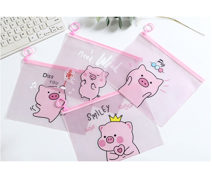 Hãy làm cho góc học tập hay bàn làm việc của bạn trở nên sinh động, dễ thương và gọn gàng hơn với Combo 2 túi đựng bút bóp viết có khóa zip heo hồng