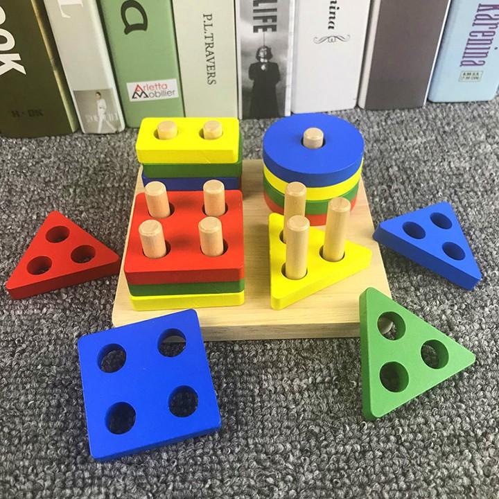 Bộ Xếp Hình Khối Đục Lỗ MONTESSORI 4 CỌC Cho Bé