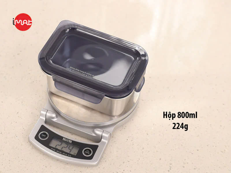 Chất Liệu: Thân hộp được làm từ inox 304, nắp bằng nhựa PP với gioăng silicone, đảm bảo kín nước, kín mùi.