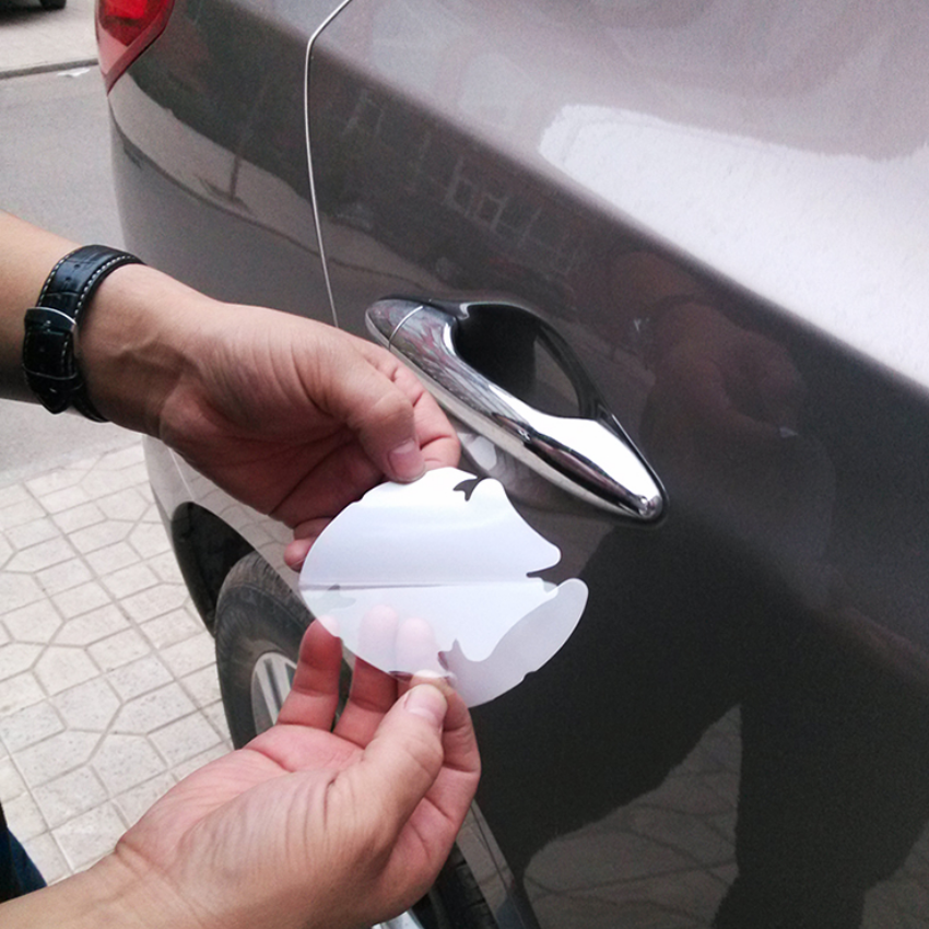 - Sử dụng dễ dàng đơn giản tại nhà. Giới thiệu sản phẩm Bộ 4 miếng dán chống xước tay nắm cửa Sau vô lăng và cần số thì tay nắm cửaô tô là vị trí mà tay tiếp xúc nhiều , khi tiếp xúc nhiều có thể dẫn tới mòn, bong tróc, mấtđi sự mới bóng của ô tô, bạn có thể bọc vô lăng và bọc cần số để bảo vệ cũng như tạo sựu mới mẻ. Vậy còn có cách nàođể bảo vệtay nắm cửa không bị xước, bong trơn sau nhiều năm sử dụng? Bộ sản phẩm được làm từ chất liệu decal nilon trong suốt, sử dụng để bảo vệ tay nắm cửaô tô ko bị xước sơn, không bị mất đi sự sáng bóng do cầm nắm nhiều Sản phẩm dễ sử dụng với thao tác bóc dán, bạn có thể thực hiện ngay tại nhà Bộ dán bảo vệ cánh cửa xe được thiết kế với chất liệu keo dán chắc chắn, không bong tróc khi rửa xe Màu sắc trong suốt sử dụng được với tất cả các loại màu sắc ô tô Mà