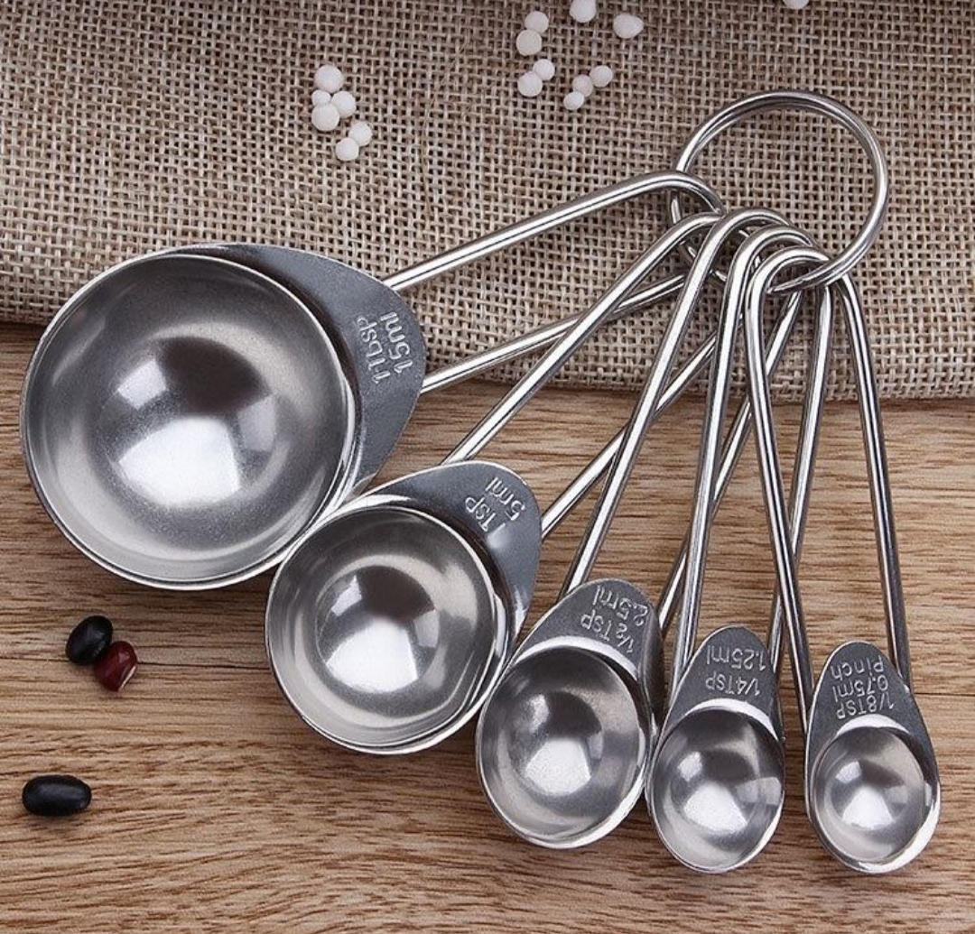 Bộ thìa đong nằm trong số những dụng cụ làm bánh cơ bản cần phải có của mỗi bạn muốn làm bánh. Chiếc bánh thơm ngon đúng vị có thể thành công hay không một phần dựa vào tỷ lệ nguyên liệu của chính xác đến đâu chính xác đến đâu đấy ạ. Hôm nay Abby giới thiệu đến bạn bộ thìa đong #5chiếc được làm bằng inox bền đẹp chắc chắn.