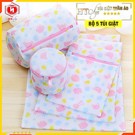 - Bộ 5 túi giặt đồ lót, tất, bảo vệ quần áo họa tiết đẹp : 3 túi giặt quần áo thường + 2 túi tròn giặt quần áo lót và tấ