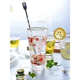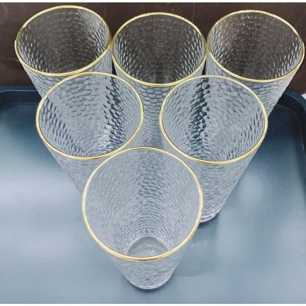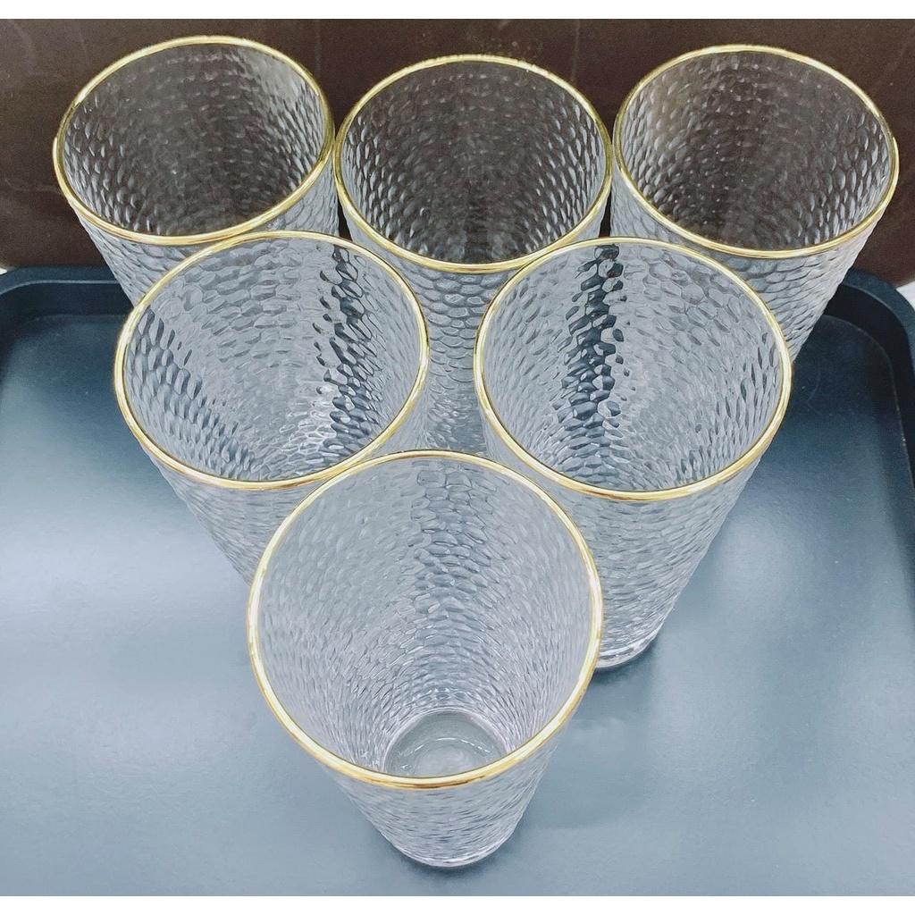 ✨Bộ 6 cốc loe cao thấp thủy tinh viền vàng vân sần 400ml