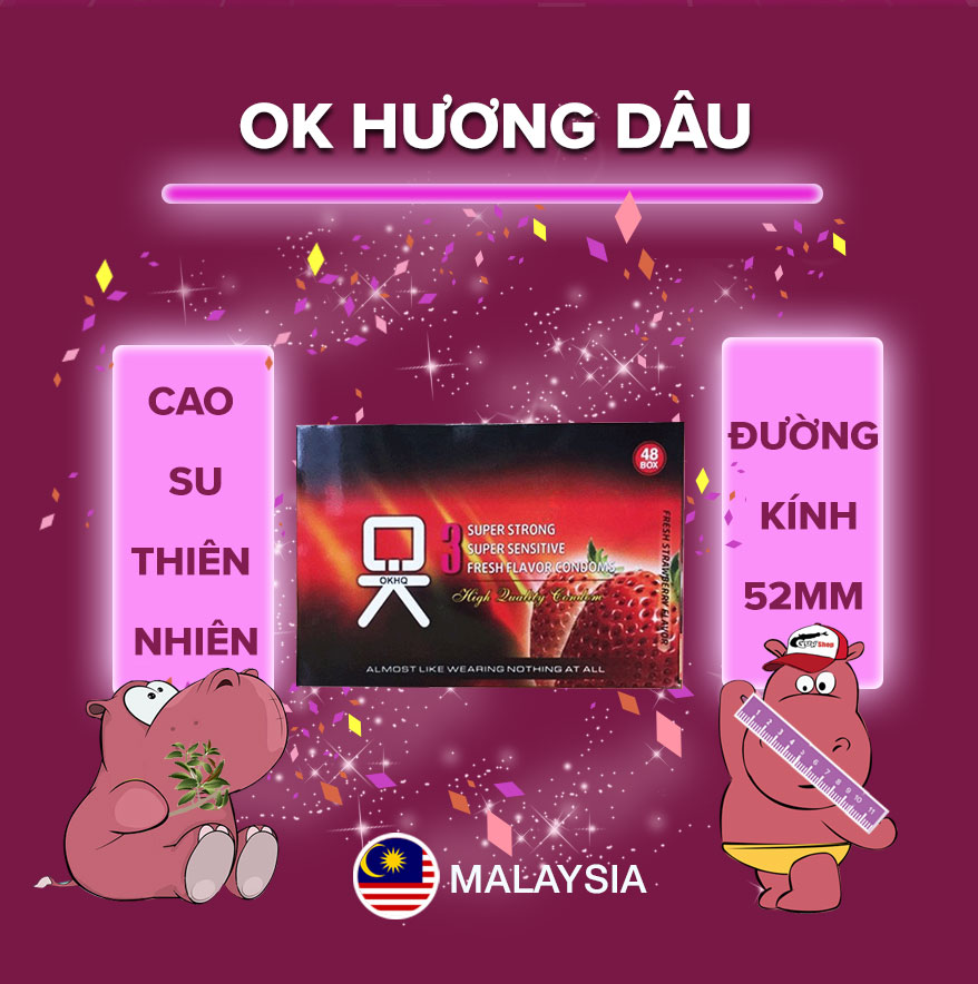 ✨Bộ 6 Hộp bao cao su OKHQ hương Dâu (1 hộp 3 chiếc) + 6 Hộp bao cao su OKHQ Không Mùi (1 hộp 3 chiếc)