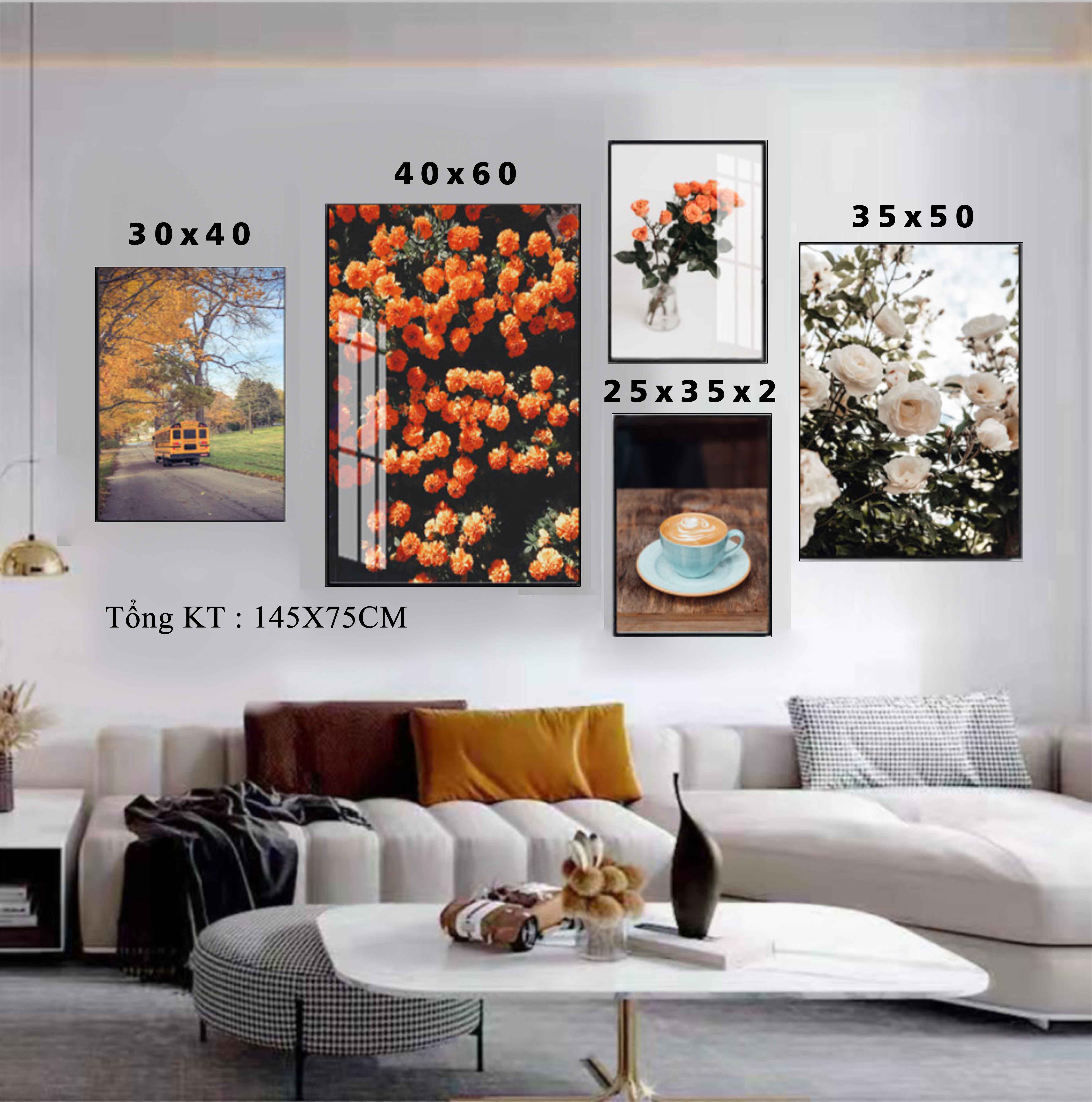 Mua tại TiktokBộ 5 tranh treo tường tối giản cho phòng khách, homestay, khách sạn và phòng ngủ Bộ tranh canvas này được thiết kế đơn giản nhưng mang lại cảm giác sang trọng và tinh tế cho không gian của bạn. Với thiết kế độc đáo, bộ 5 tranh này sẽ trở thành điểm nhấn của không gian nơi bạn treo chúng. chất liệu : tranh pp kim sa đóng khung composite + fomex KT : 1 TẤM 4060+ 1 TẤM 3550+ 1 TẤM 3040 + 2 TẤM 2535