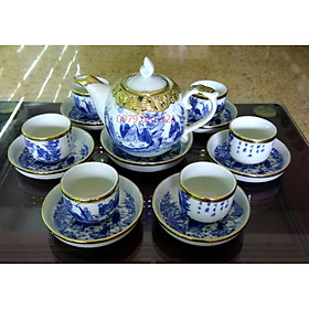 Bộ ấm chén Bát Tràng - Sản phẩm bao gồm: 1 Ấm, 6 chén, 7 đĩa kê - dung tích ấm 350ml - Chất liệu: Gốm men lam Bát Tràng bọc đồng. - Bộ ấm