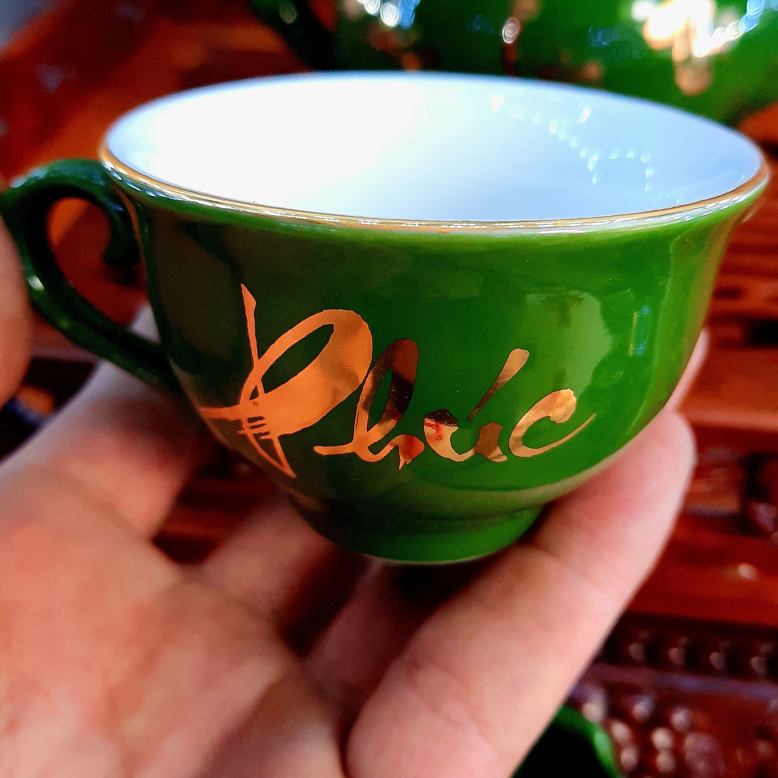 Bộ ấm chén Bát Tràng phú quý men xanh lục ngọc bảo họa tiết Phúc - Lộc - Thọ vẽ vàng 24k - Là sản phẩm hội tụ được nét tinh xảo của bàn tay