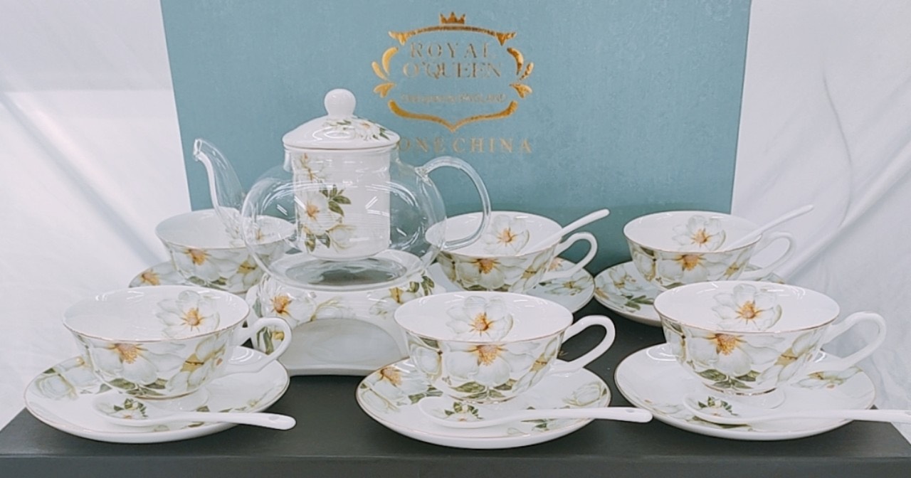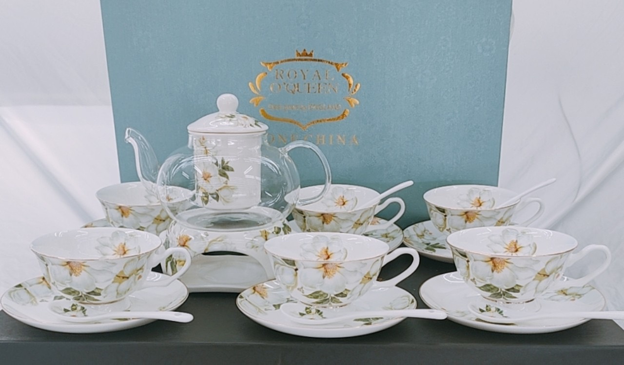 Bộ sản phẩm sang trọng đẳng cấp phù hợp cho mọi đình làm quà tặng tân gia năm mới làm quà tặng các cá nhân và doanh nghiệp. Điểm nhấn của bộ ấm chén sứ xương họa tiết hoa nhài tây cao cấp phong cách bắc âu, họa tiết đơn giản sang trọng,bộ sản phẩm đóng trong hộp giấy có họa tiết đơn giản mà tinh tế.