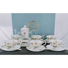 Bộ ấm chén chất liệu sứ xương cao cấp với thiết kế đẹp ,tiện dụng chất liệu cao cấp,dễ bảo quản ,vệ sinh.
