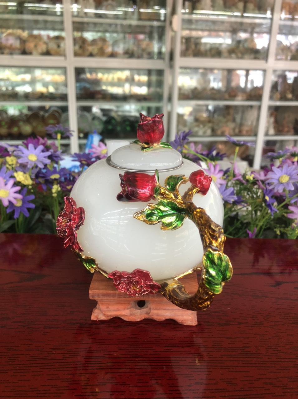 Bộ ấm trà bạch ngọc hoa mẫu đơn