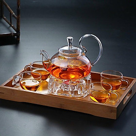 BỘ ẤM TRÀ THUỶ TINH CHỊU NHIỆT CÓ ĐẾ NẾN, BỘ ẤM CHÉN UỐNG TRÀ CAO CẤP 600ML