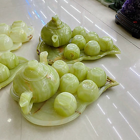 Chất liệu: Đá ngọc Serpentine Bộ sản phẩm gồm: 7 dĩa, 6 ly và 1 ấm trà Dùng để uống trà hoặc làm quà biếu tặ