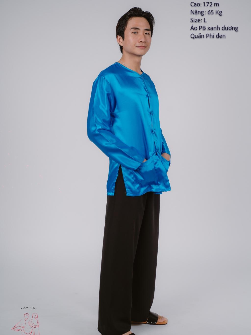 ✨Bộ áo bà ba nam phối áo phi xanh dương + Quần phi đen - Có bộ bà ba Bigsize