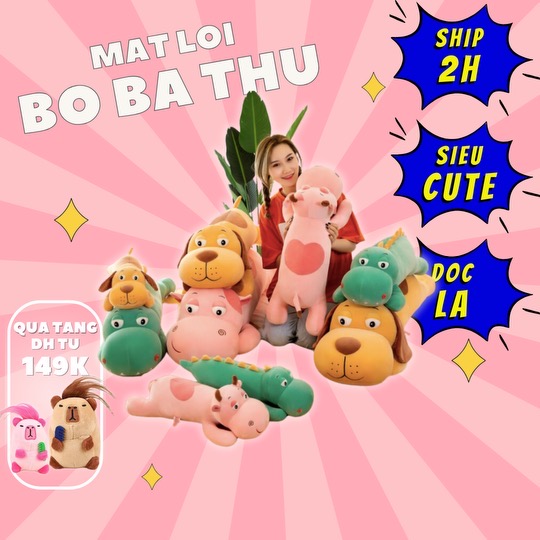 Tên sản phẩm : Gấu bông chó tàn nhang, trâu hồng, khủng long xanh.