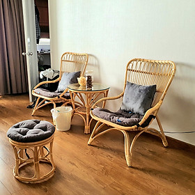 + Bộ sản phẩm gồm : 01 ghế size 1m + 01 nệm màu sắc như hình + 01 đôn theo ghế (nếu chọn bộ có đôn) + Chất liệu ghế : Mây song mật