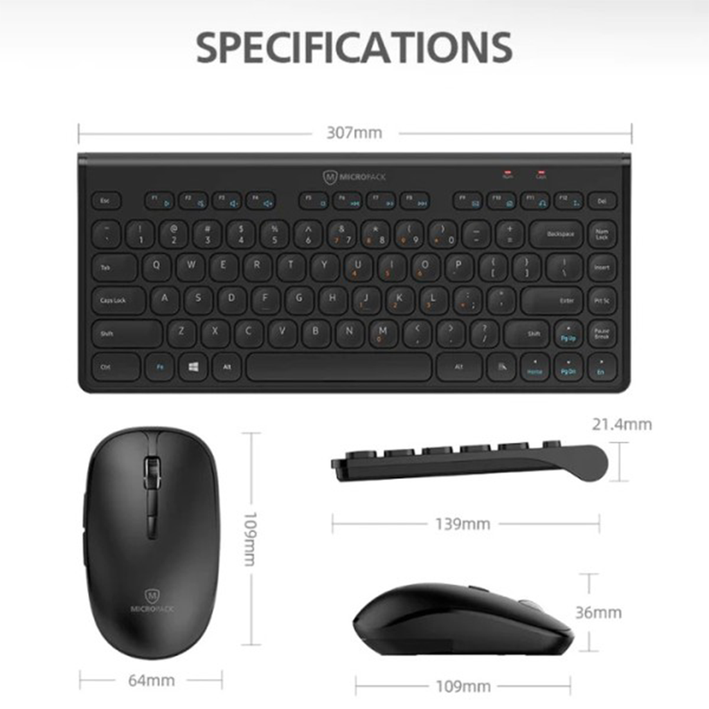 - Thiết kế nhỏ gọn, tiện dụng cho văn phòng - Bàn phím êm ái hạn chế tiếng ồn - Thân chuột nhỏ gọn vừa lòng bàn tay - Khả năng kết nối nhanh chóng
