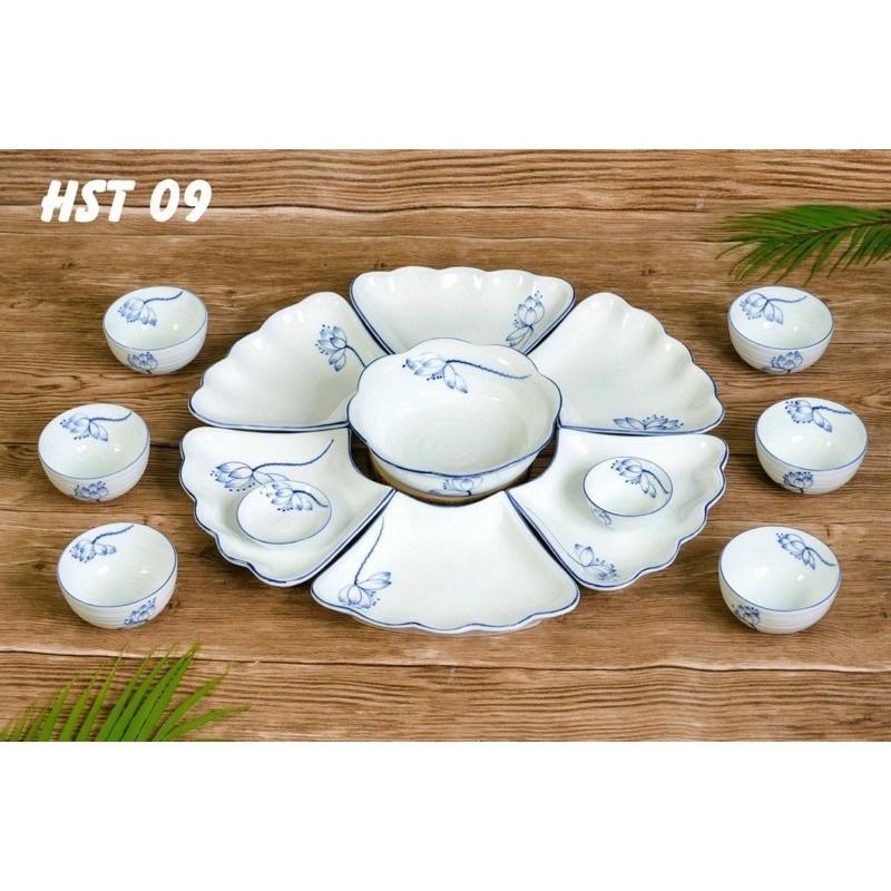 Bộ bát đĩa gốm sứ Bát Tràng cao cấp men trắng 23 chi tiết như hình