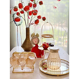 Mô tả Bộ sản phẩm: - Bộ 1 bình + 6 cốc + khay + giá úp cốc - Bình dung tích 1800ml. Nắp inox có zoăng cao su, đảm bảo an toàn cho sức