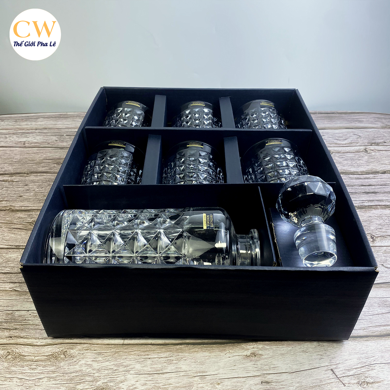 Bộ Bình Ly Rượu Mạnh Whisky Diamond Pha Lê Tiệp Khắc Chính Hãng Bohemia Crystalite