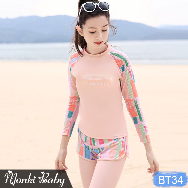 - Thiết kế chống nắng với áo dài tay cùng quần bơi dài rời chống nắng, có thể mặc 2 cách.