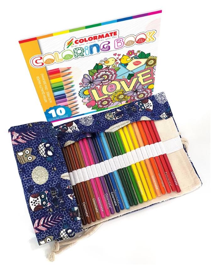 Bộ Bút Chì Màu Roll Up Coloring Set Colormate 11697 Bộ 24 cây bút chì cao cấp kèm tập tô màu 10 trang, màu sắc tươi sáng, mềm mại, nổi bật, với thiết kế thông
