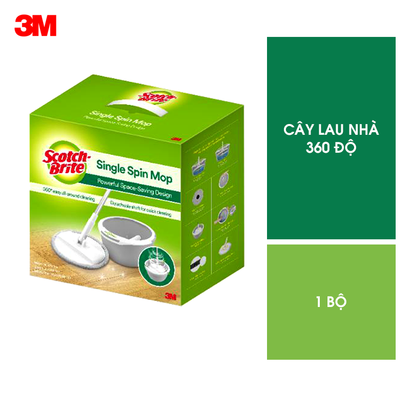 THÔNG SỐ KỸ THUẬT Thương hiệu: 3M SCOTCH-BRITE Sản xuất tại: Mã sản phẩm: Bộ sản phẩm bao gồm: 1 cây lau; 1 bông lau; 1 thùng giặt/vắt Màu sắc: màu xám ƯU ĐIỂM NỔI
