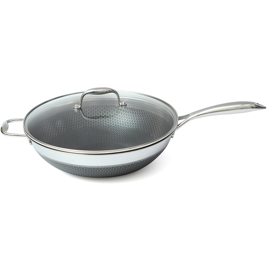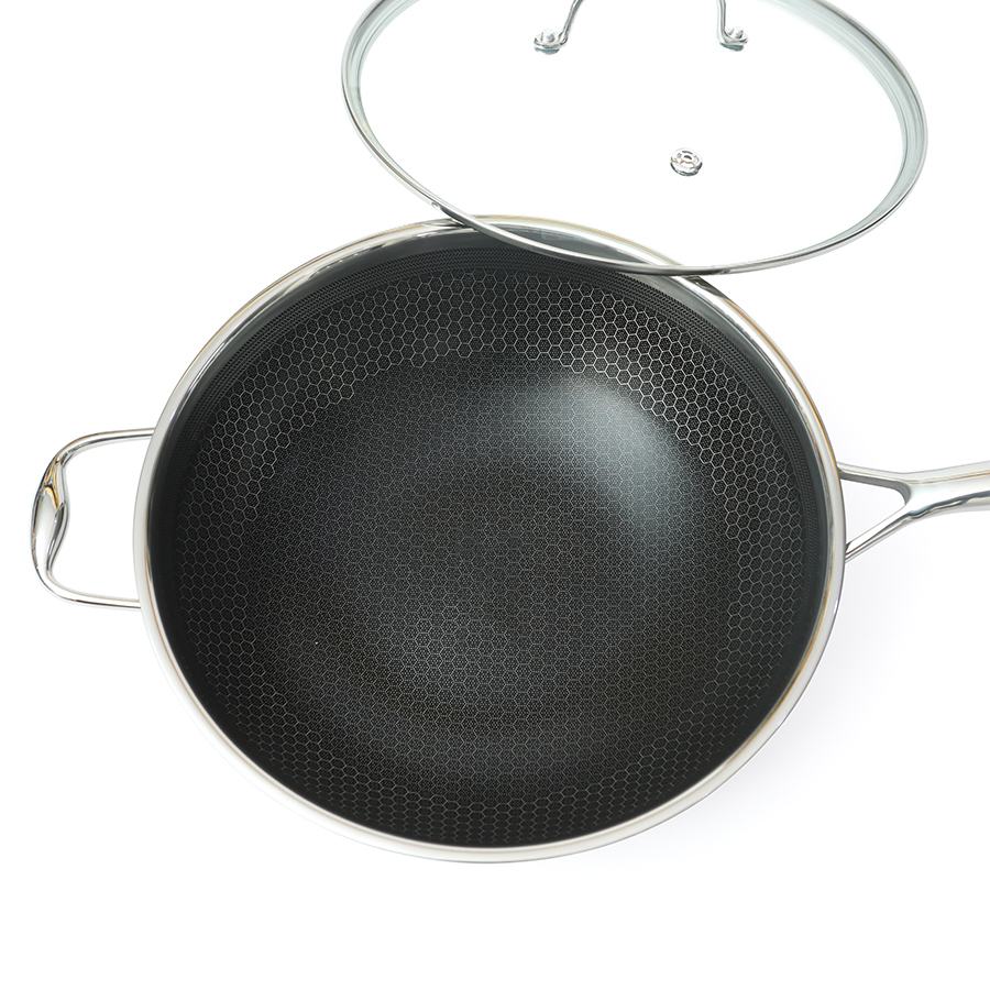 • Chảo tổ ong chống dính dạng tay cầm đáy liền 3 lớp Inox Sus304 vân chống trượt • Công nghệ Honey Comb - dạng tổ ong chống dính và chống quá nhiệt an toàn