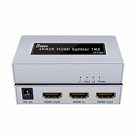 Bộ chia HDMI 2 cổng hỗ trợ trình chiếu 4K*2K DT-7142 hỗ trợ 1 cổng vào tín hiệu HDMI và cho phép mở rộng, xuất tín hiệu ra 2 cổng đồng thời cùng lúc mà không hề bị suy hao tín hiệu